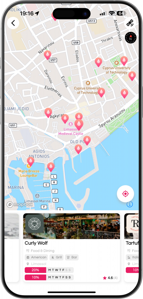 “Discover all participating merchants near you — explore discounts by location on the interactive map.”