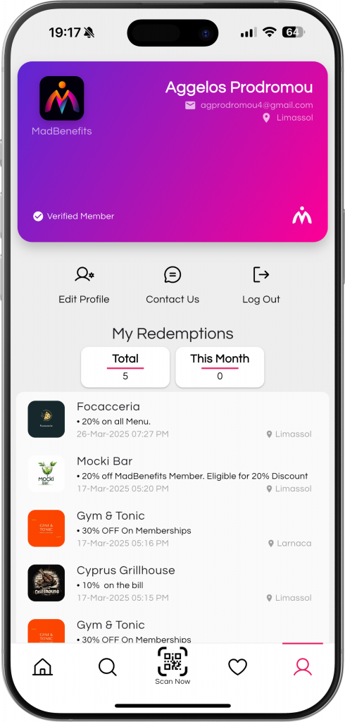 “Manage your account details, preferences, and saved perks effortlessly from your profile.”